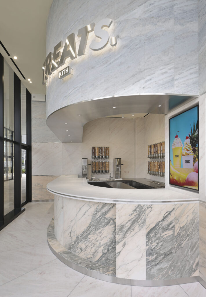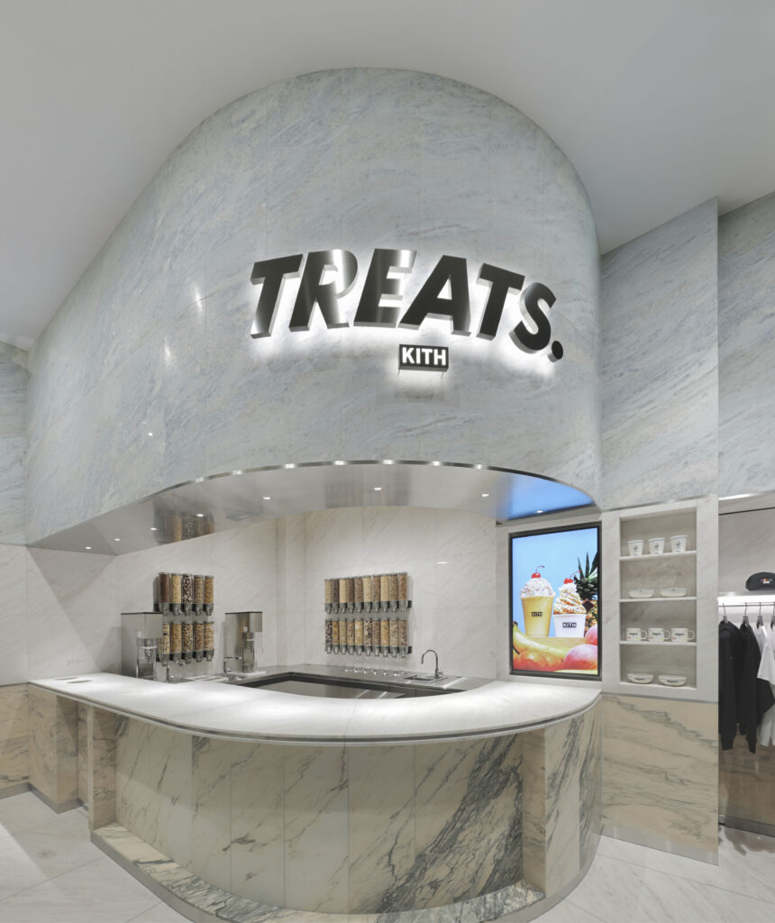 KITH TREATS. OSAKA 2025.03.21 Location : うめきたグリーンプレイス / OSAKA Date : May,2025 Client : BAYCREW'S co.,ltd Design : Porto Architecture Local Architect Design : Kanome Inc. Contractor : COSMO CREATE Lighting:Y LIGHTS Photo : Daisuke Shima (ad hoc Inc.)